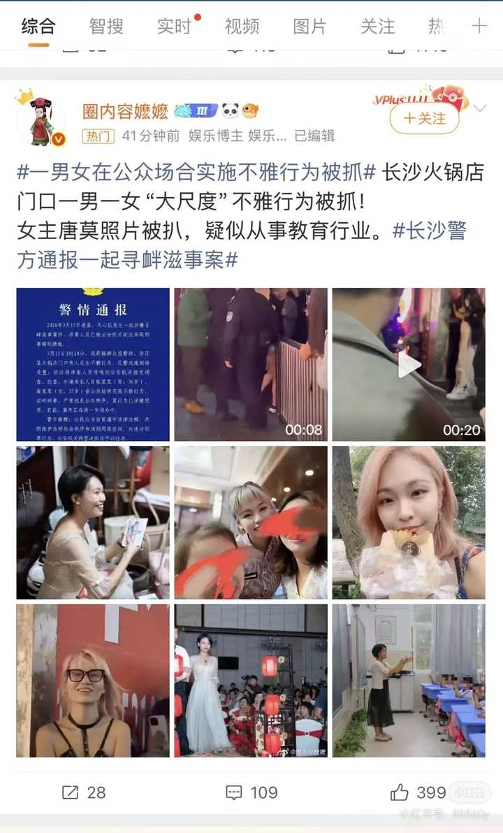 3月16日晚,长沙市公安局天心分局发布警情通报,直接击碎所有谣言,给这场舆论闹剧画上了阶段性句号。通报明确指出,涉案人员为张某某(男,36岁)、唐某某(女,35岁),二人在公共场所实施不雅行为、起哄闹事,严重扰乱公共秩序,已涉嫌寻衅滋事罪,被依法采取刑事强制措施。最关键的是,通报清晰确认唐某某性别为女性,彻底推翻了“男扮女装”“跨性别者”的猜测,也让此前所谓的“女权辟谣”传言不攻自破——所谓的性别争议,本质上只是网友的误判和别有用心者的流量炒作。